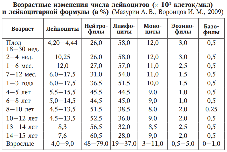 У людей от 16 лет и старше норма числа лейкоцитов составляет 4-9х109/л.